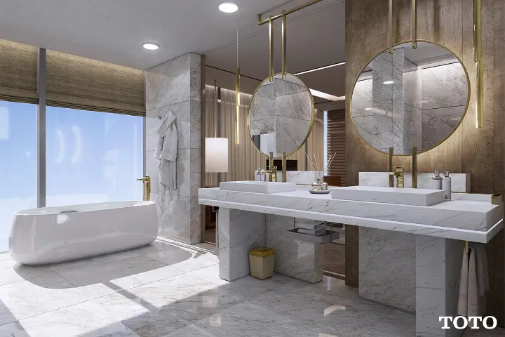 - وهم المساحة: تخلق المرايا شعورًا بالاتساع، والتلاعب بالضوء والانعكاسات لجعل الحمامات الصغيرة تبدو أكبر وأكثر انفتاحًا.